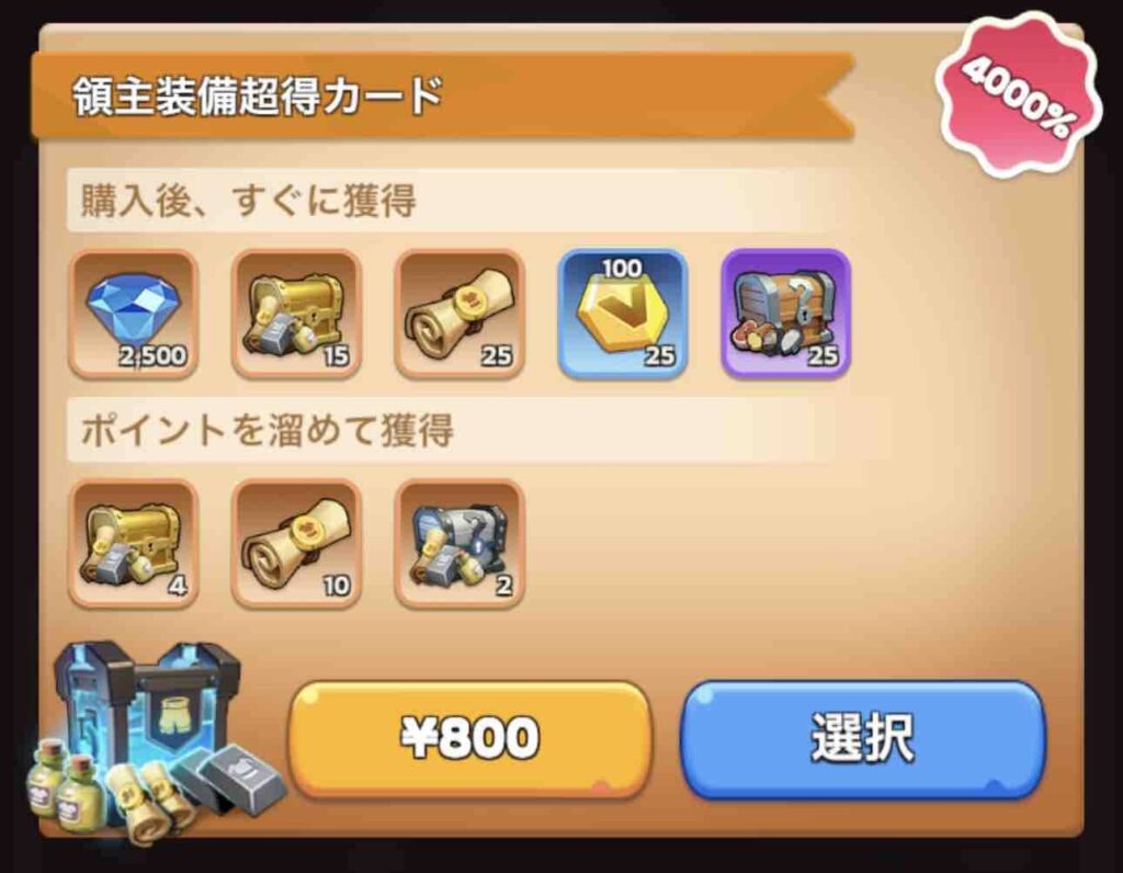 で、つい最近この中の英雄装備超得カードの内容が更新されたんだけど、この更新内容がめっちゃお得だと気づいてしまった。