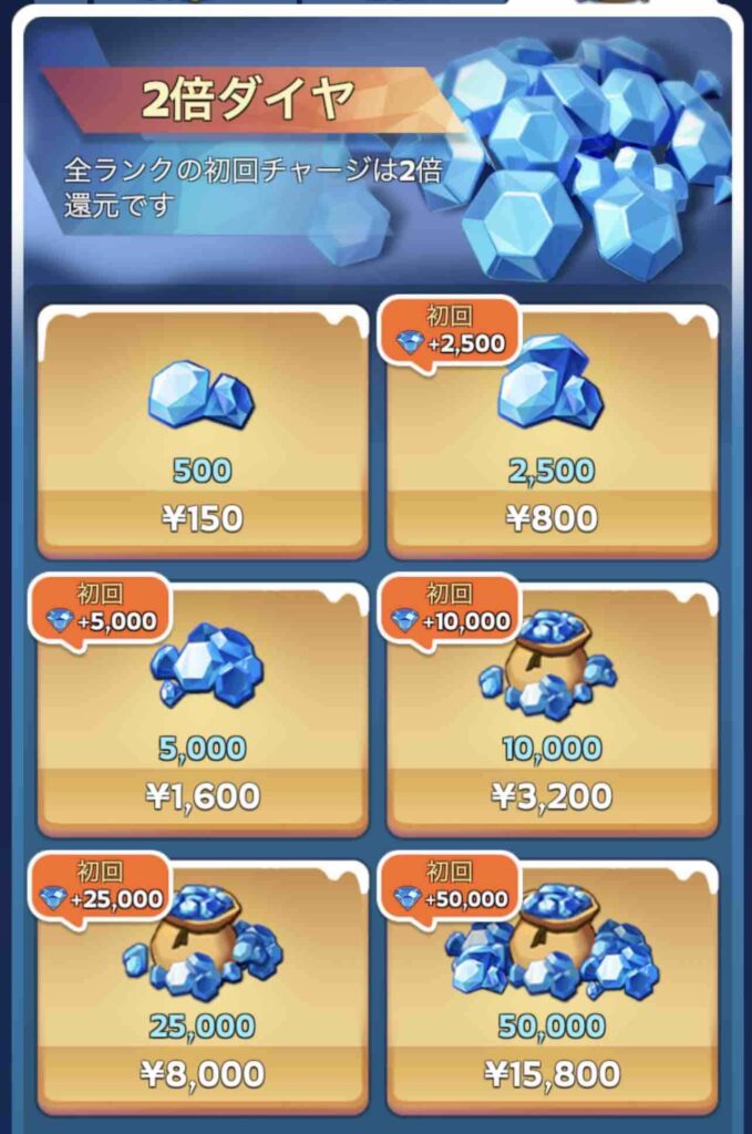 今日はイベント「秘宝ハンター」の2日目で、ダイヤショップの150円ダイヤに課金した。