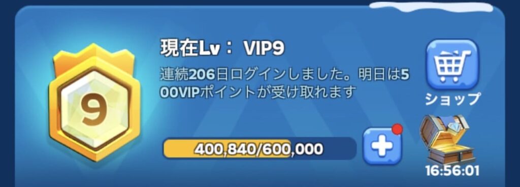 ちなみに今の時点でVIP10にできるくらいダイヤ貯まってるんだけど、何かのイベントでダイヤ交換に報酬がつく時までこのままにしておこうと思ってる。