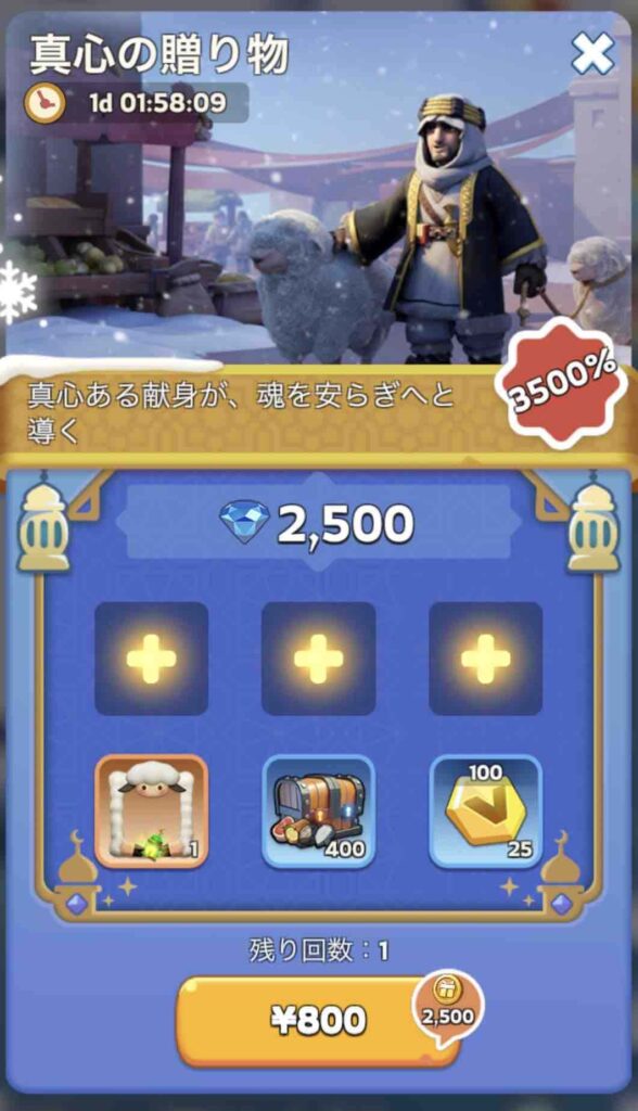 ホワイトアウトサバイバル:『真心の贈り物』の課金内容(課金額:税込800円)