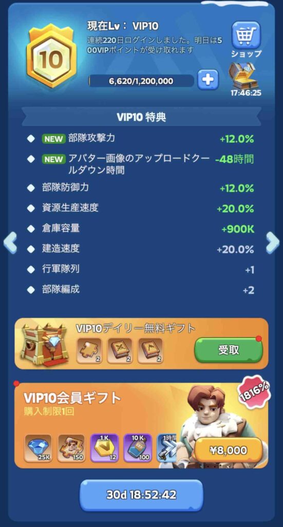 ホワイトアウトサバイバル:VIP9からVIP10にレベルアップした