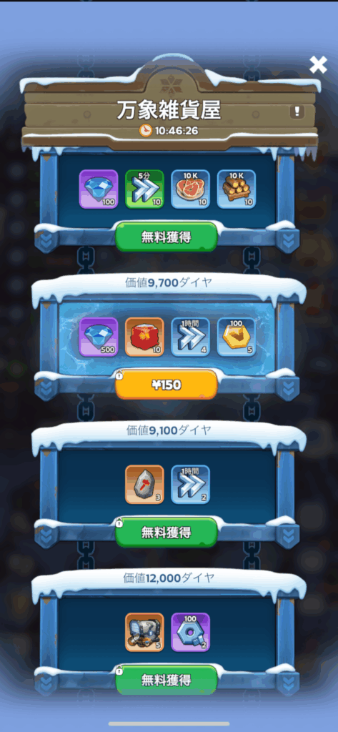 課金アイテム今日はホワイトアウトサバイバルで万象雑貨屋に150円の微課金をした。