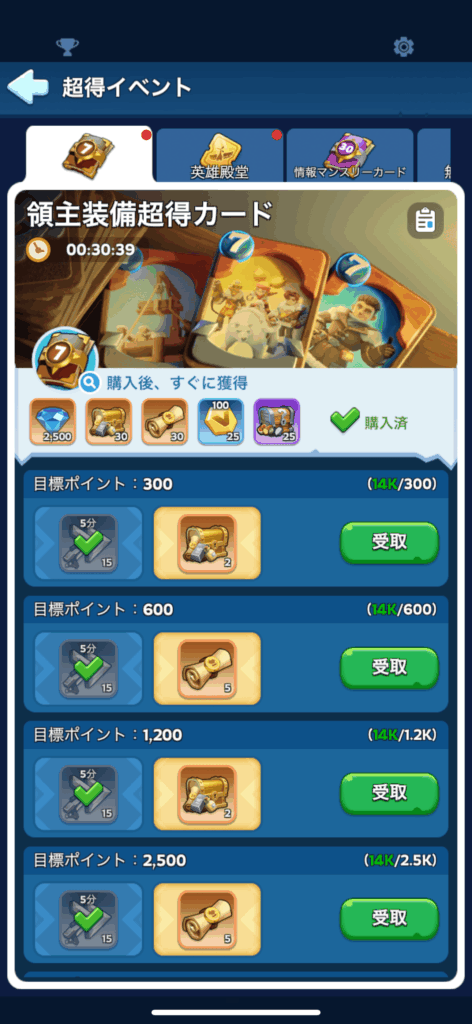 課金アイテム今日も恒例行事の領主装備超得カード購入を行った。