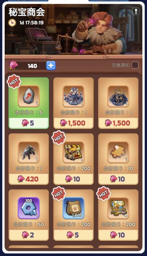 それに加えて、宝箱を開封してゲットしたバラで追加の英雄パーツセレクト宝箱をゲットすることもできるし、交換にバラ1500個も必要な都市の装飾アイテム(有効化すれば攻撃力永久up)も多分ゲットできるようになる(これが結構デカそう)。