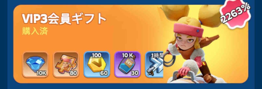 今日はVIP3会員ギフトに課金した。