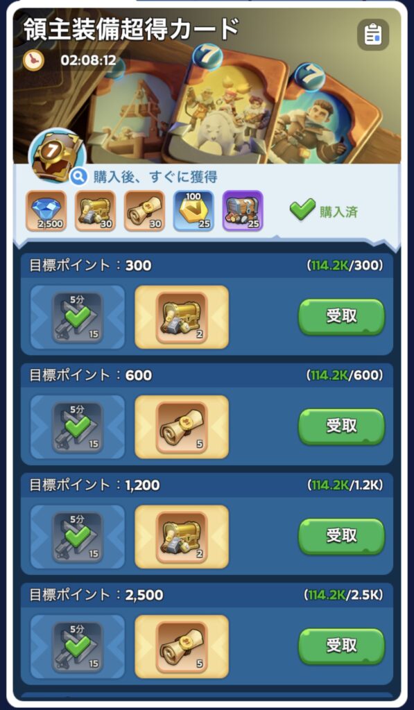 今日はパトリックの課金祭りに便乗して、いつもの領主装備超得カードを購入。
