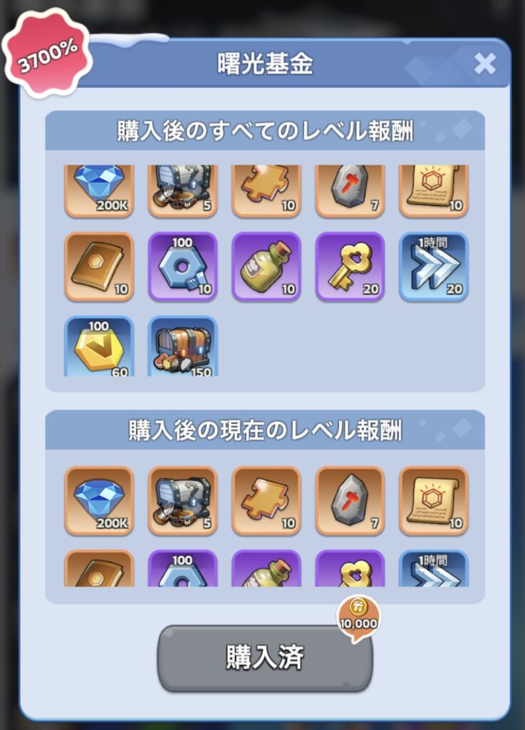 ホワイトアウトサバイバル:『曙光基金』の内容(課金額:3200円)
